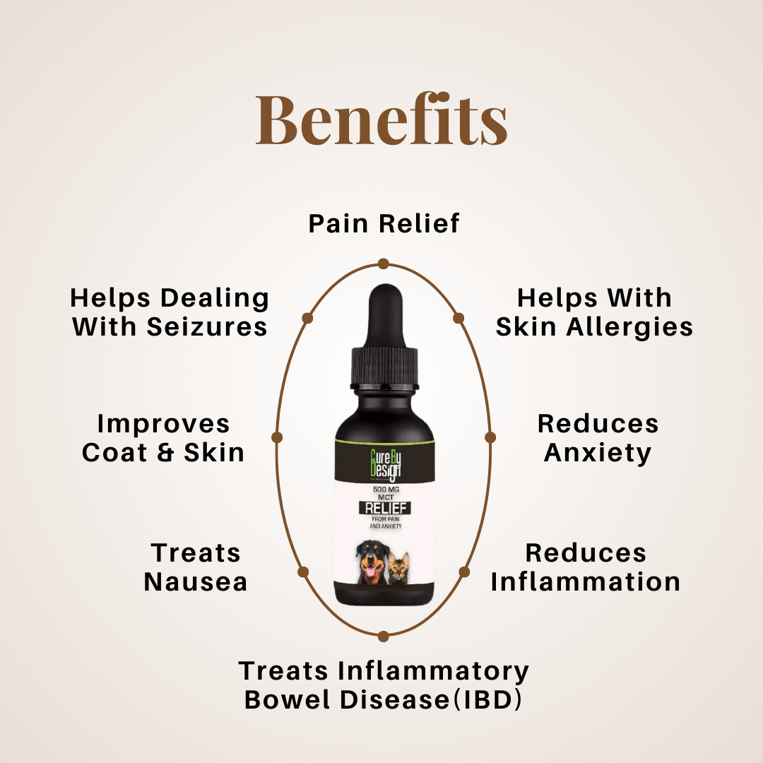 • Cure By Design’s Relief Oil for Pets (MCT) is specially designed to give your pet’s the desired nutrition and enhance its bodily functions.